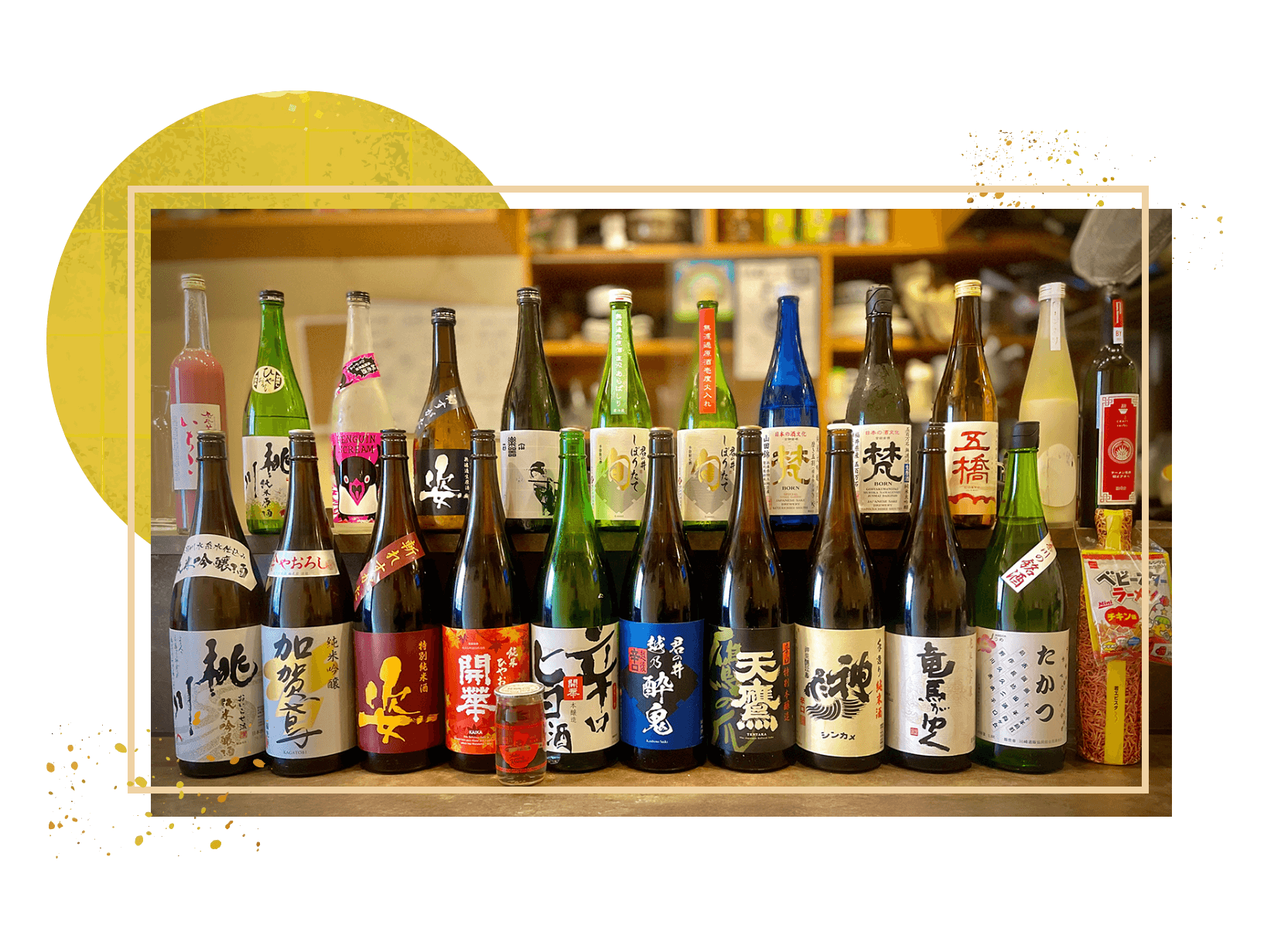 全国各地から厳選した20種以上の銘酒を取り揃え、大将自らが目利きした